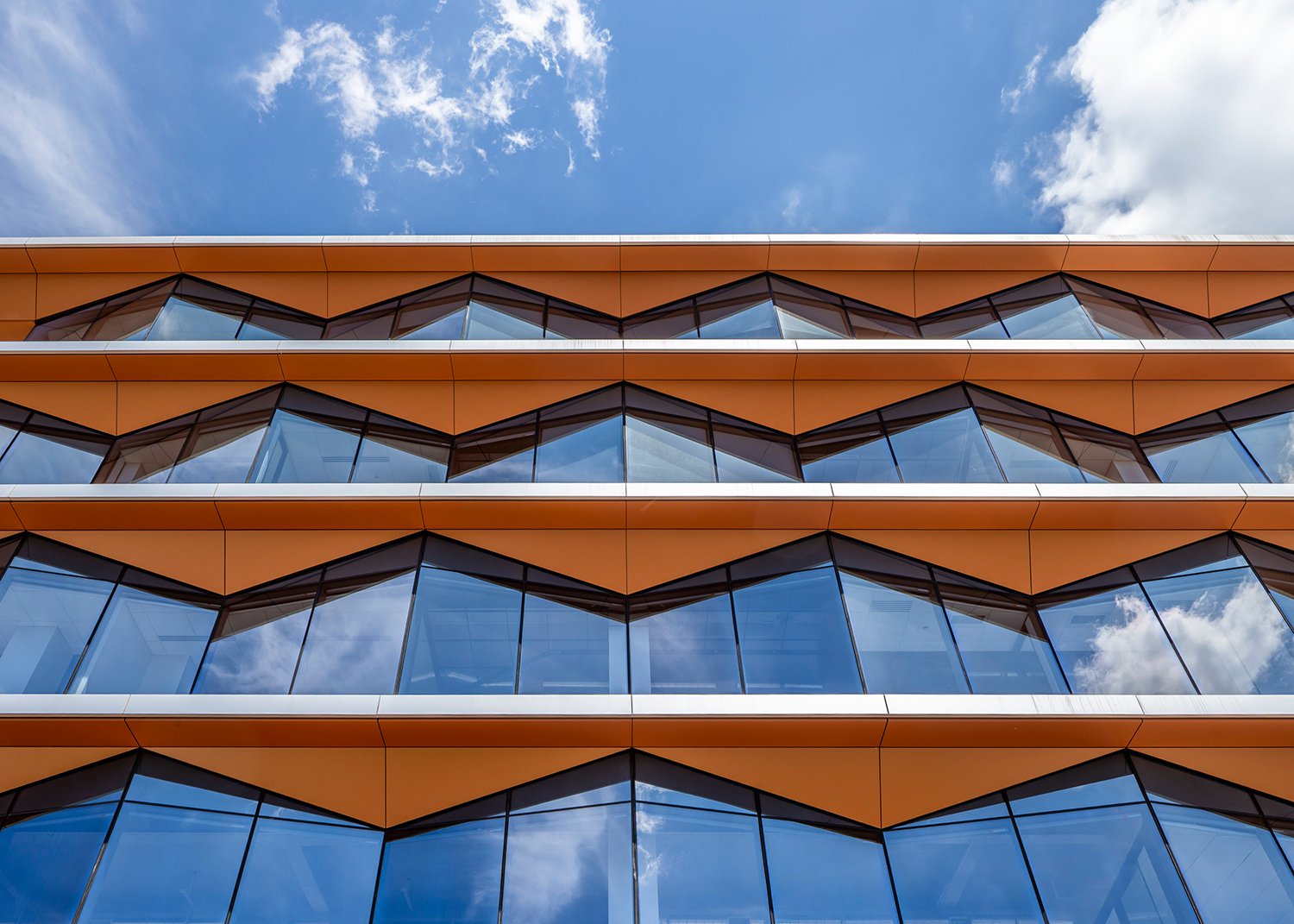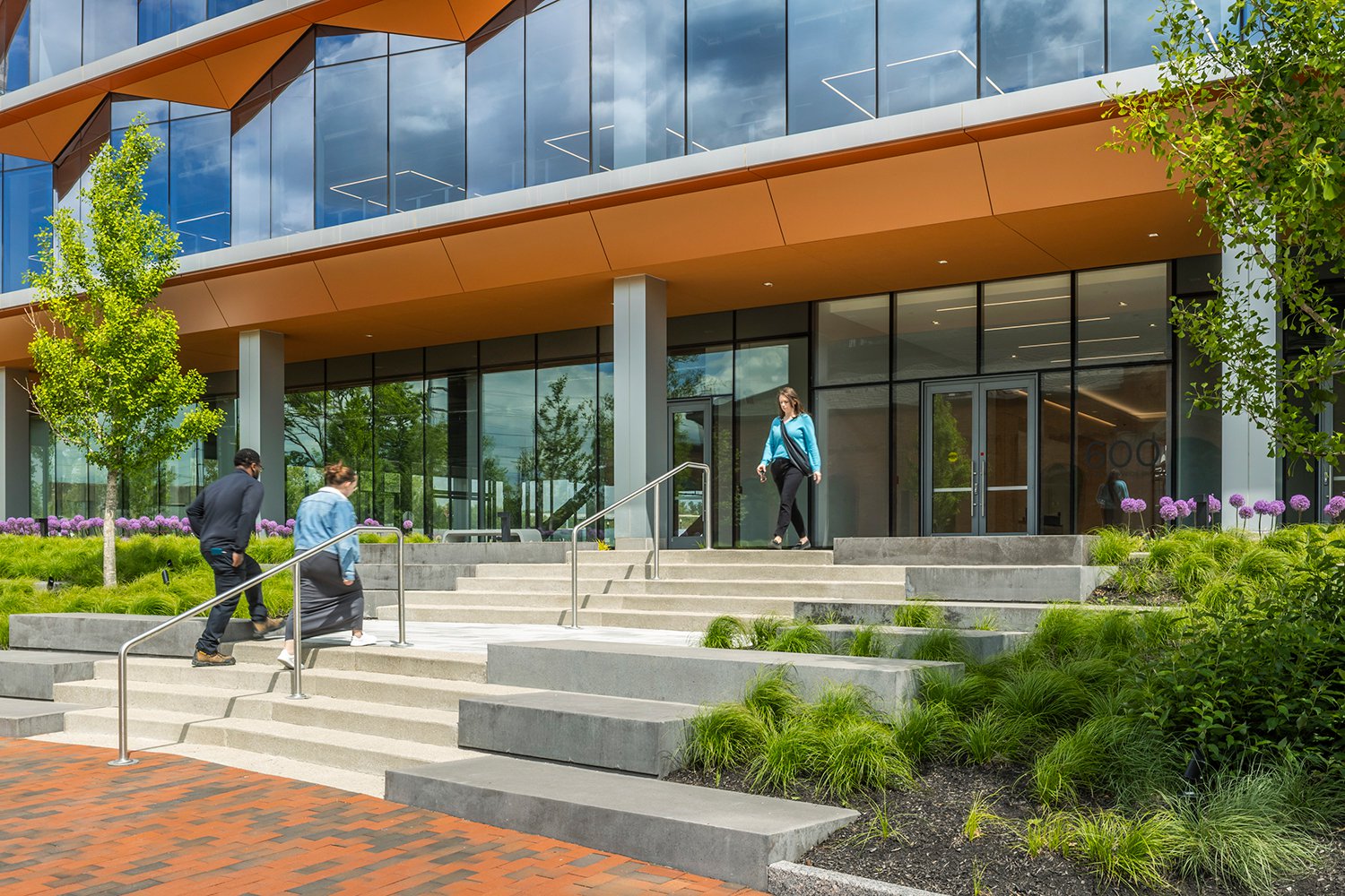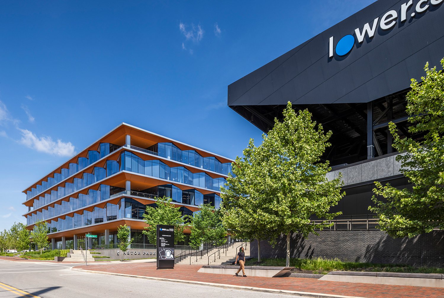 Located in Columbus’ growing Arena District, Astor Park Office anchors a three-phase master plan adjacent to Lower.com Field, home of the Columbus Crew. Its saw-toothed façade design echoes the ripples of the adjacent Olentangy River, capturing movement and light through a distinctive, water-inspired rhythm. Prioritizing visibility, efficiency and connection, the building features outdoor terraces, a midblock pass-through lobby and active ground-floor amenities that invite public engagement. Integrated with surrounding green space, riverwalks and bike networks, the project supports well-being and an inclusive urban lifestyle.