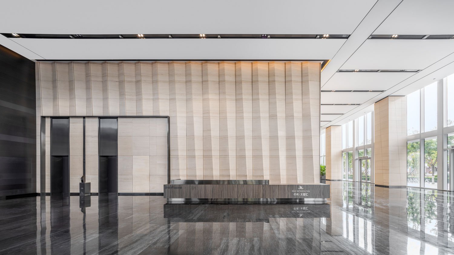 The tower design concepts are based on two aspects: enhancement of the urban axis and highlight of the local features. The "portal" shape designed for the tower massing not only enhances the west axis of urban trunk roads but also points at the pivotal river on the south. The tower facades wrapping the "portal" use undulating geometrical elements inspired by the fluidity of the nearby Tonghui River.