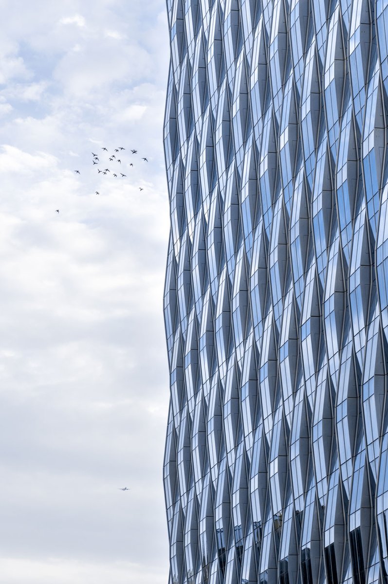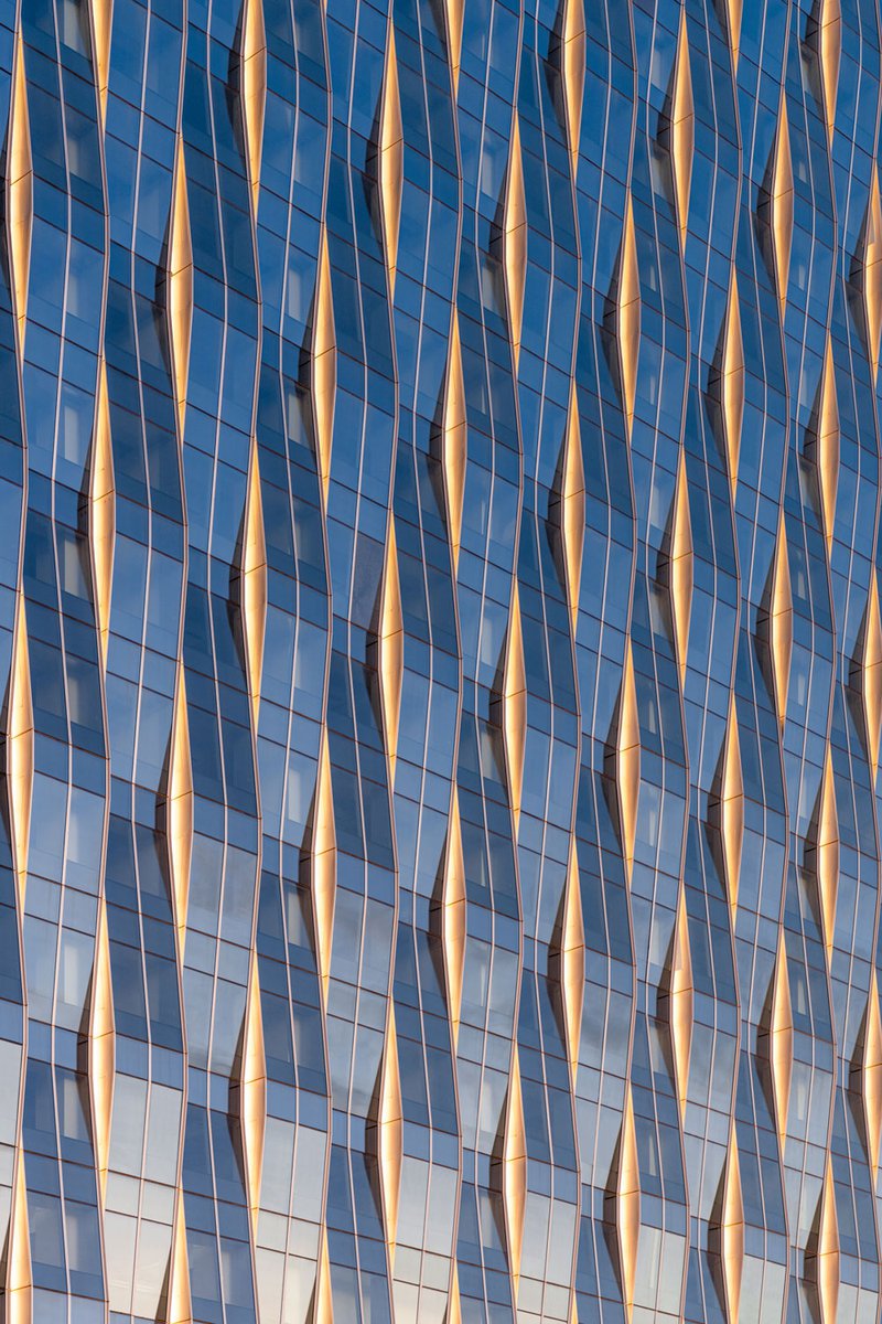 The undulating geometrical elements on the tower facades decrease the direct indoor sunlight by 20-30% in the summer and guarantee adequate sunlight in the winter as well. Operable panels deliberately concealed on the sides provide at least four windows for natural ventilation for each tenant, improving the indoor environment and reducing energy consumption.