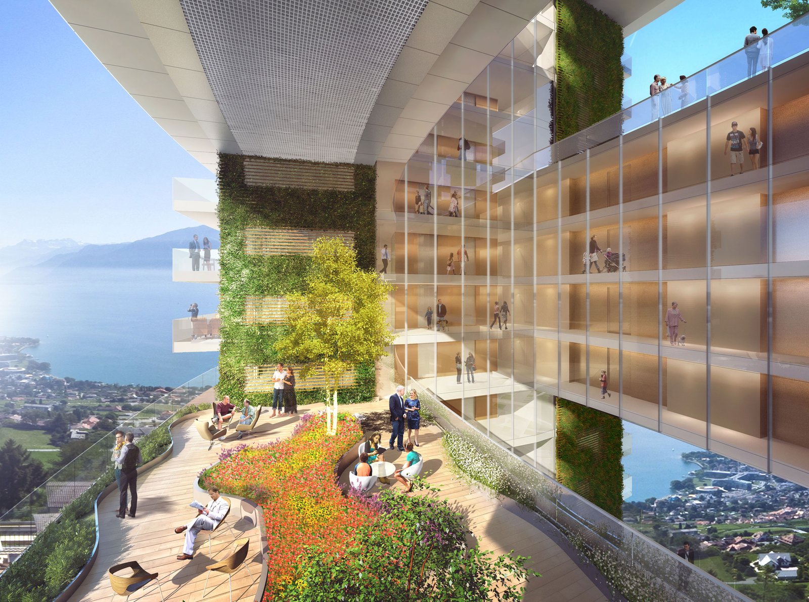 Alternating sky gardens arranged around the center atrium create inviting amenity spaces for the apartment and office functions. Different types of vegetation, green walls and a variety of amenity programs will create vibrant spaces that offer incredible views of the surroundings.