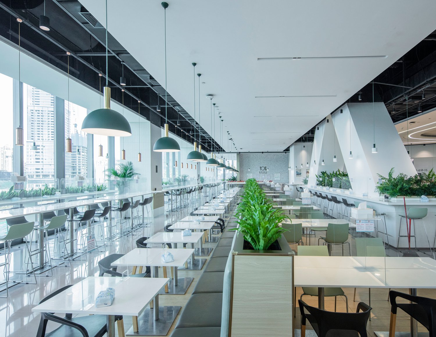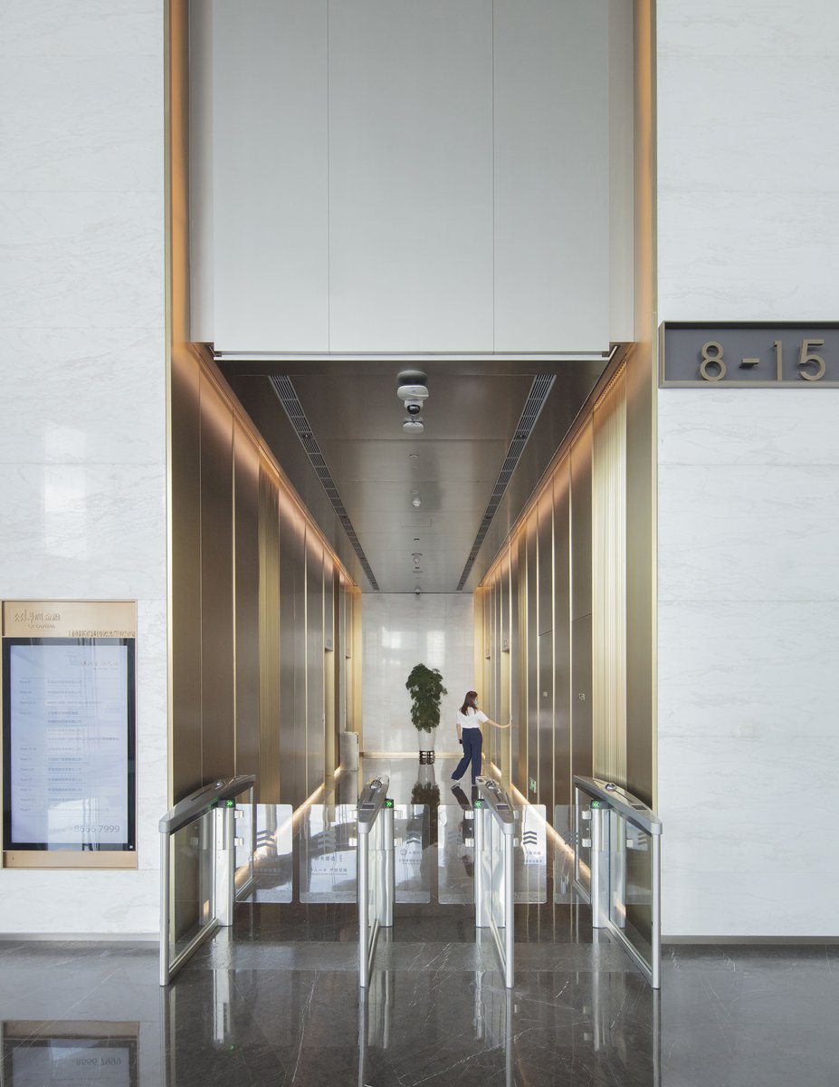 Initially conceived as a vertical campus for the CR Financial group, the tower houses unique spaces for training, education, office and conferencing for the company in one building. Although the triangular plan was initially a contextual response, it also achieves spatial flexibility not found in traditional office towers. Locating the primary core along the northwest face of the triangular form creates contiguous floor area in a relatively small footprint that is unexpected and efficient. The center of the tower is free of vertical structure, allowing for a variety of penetrations throughout the building, including multiple amphitheater and atrium arrangements. Designed in collaboration with Woods Bagot, the interior designer, these multifunctional spaces are the spirit of the project, offering interfloor connectivity as well as fostering a collaborative environment for the users.