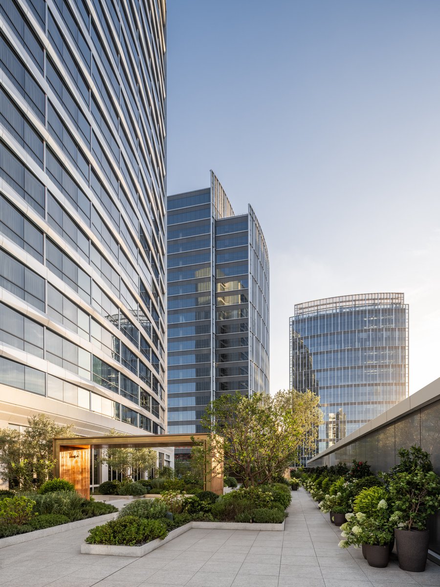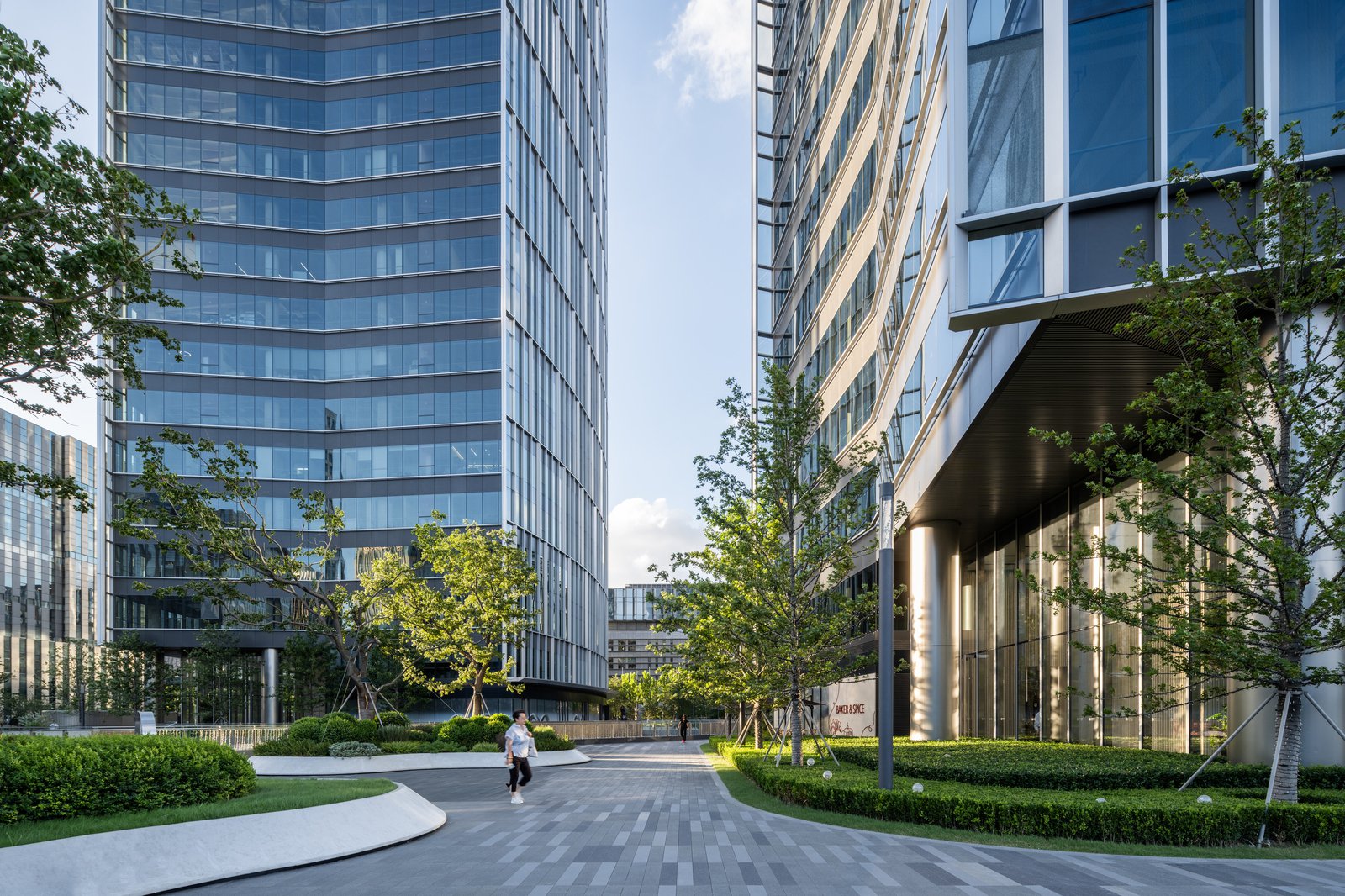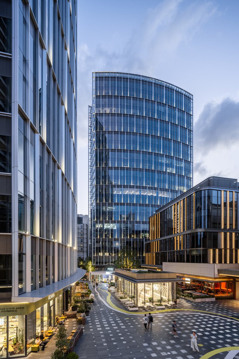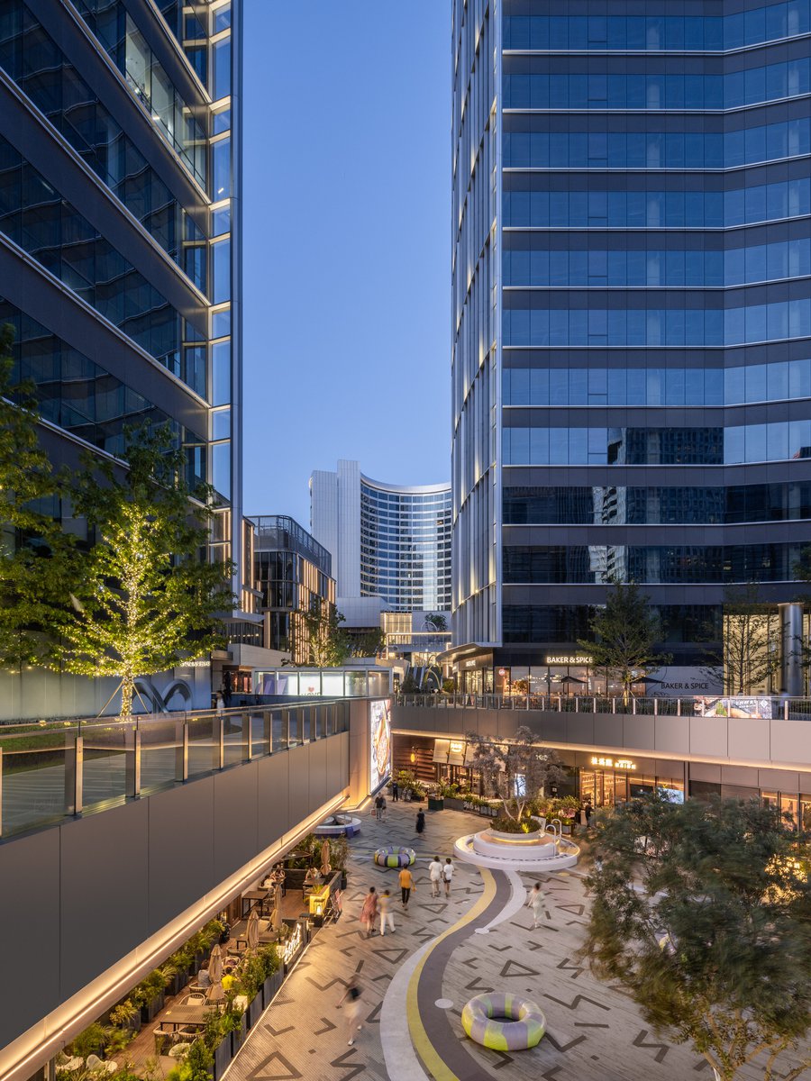 The project reimagines this zone within the former Expo site as a connected, human-scaled neighborhood that considers the site’s past while enabling meaningful future growth. Existing below-grade structures and caissons were carefully studied, retained and adaptively reused. This strategy not only minimized waste but also provided a foundation for a new mixed-use program. Above ground, a fully integrated urban center is composed of twin Class A office towers, boutique office villas, residences, layered retail, and two hotels—including Asia’s first Thompson hotel and a Mumian hotel. Below ground are direct connections to active retail space.