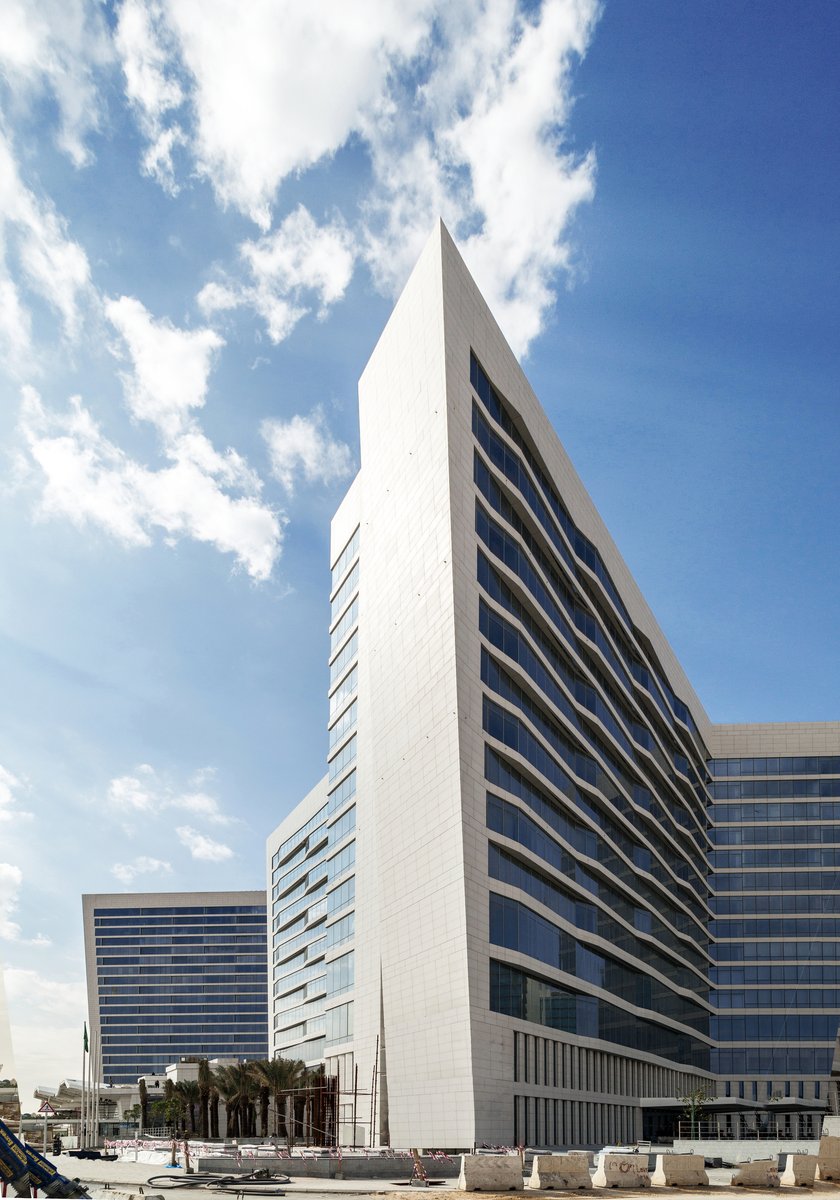 Designed in collaboration with Omrania, the Hilton Riyadh is located along the city’s Eastern Ring Road, a major thoroughfare that links King Khalid International Airport with downtown. Two towers—a 20-story, 645-key hotel and a 14-story, 221-unit serviced apartment building—are connected by a large podium at grade. The podium provides a variety of food and beverage outlets, 6,500 square meters of meeting facilities, and a large, 4,100-square-meter multipurpose hall, the largest in the city. Leisure and recreational facilities include a men’s spa, health club and pool, as well as similar private facilities for women. The roof of the multipurpose hall features a mixture of garden areas and terraces that connect the building to the surrounding landscape, as well as relate to the area’s overall master plan.