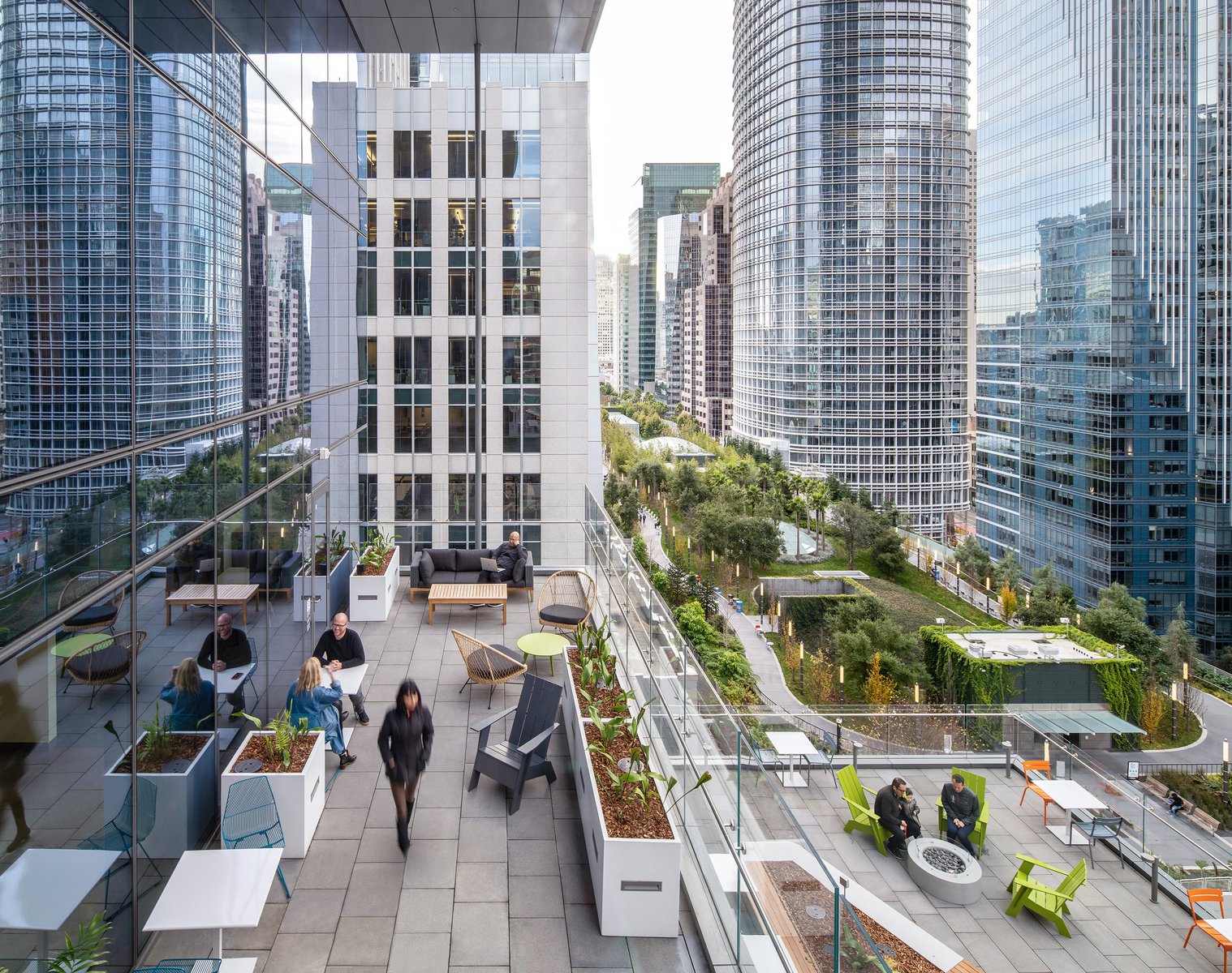 Located at the corner of Howard and Beale streets in the Transbay district of San Francisco, this commercial office tower sits across the street from the new Transbay Transit Center and just three blocks from San Francisco Bay. The 45-story tower is designed with a massing that integrates three different floor plates. Within these distinct floor plates, a series of large outdoor terraces are carved out to provide substantial outdoor tenant amenity spaces—mini “parks in the sky.”