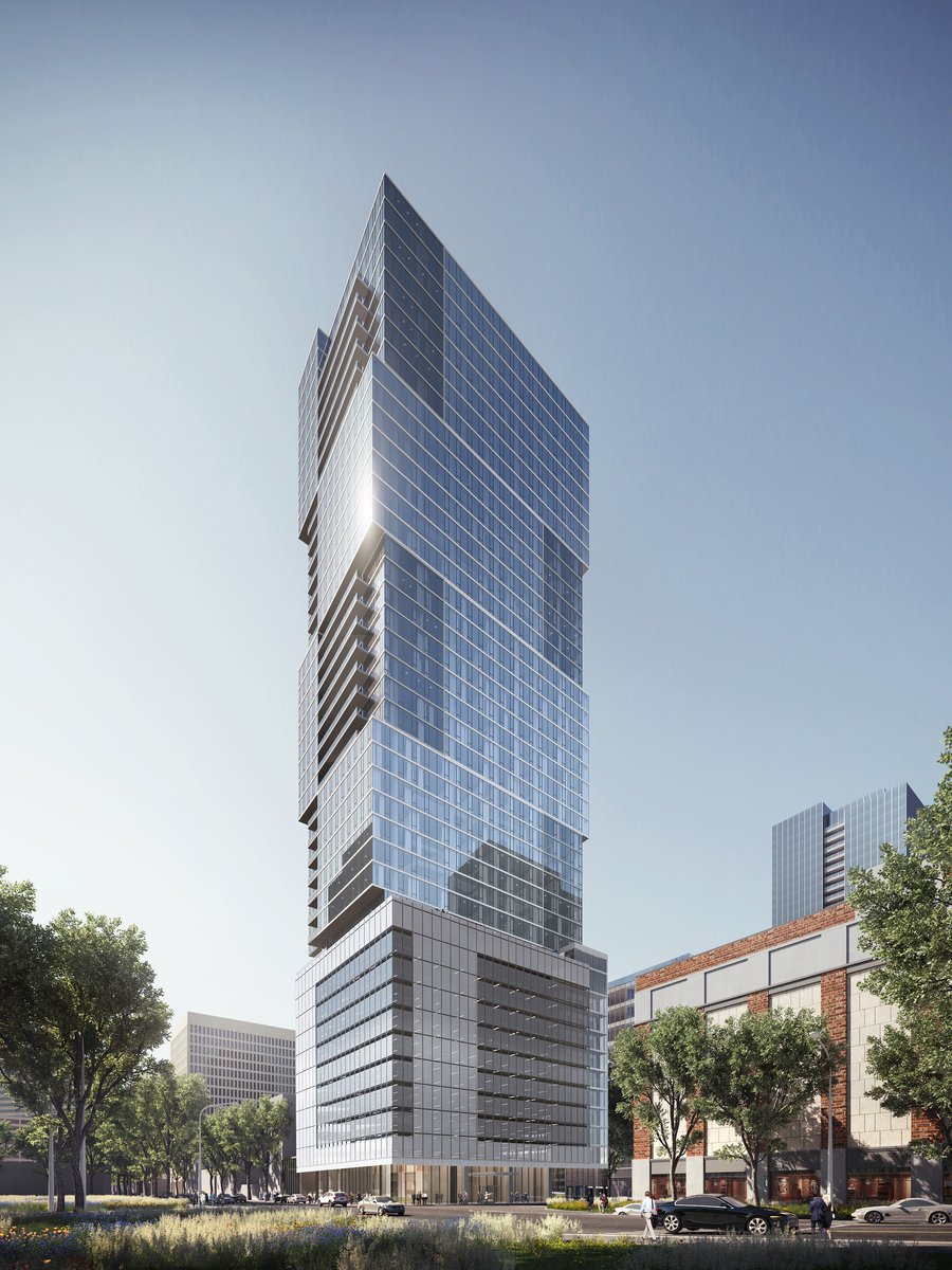 The 38-story, 456-foot-tall Prime building includes 350 apartments and 499 parking spaces. The parking is designed to accommodate residents from both towers since no structured parking is included in Alcove.