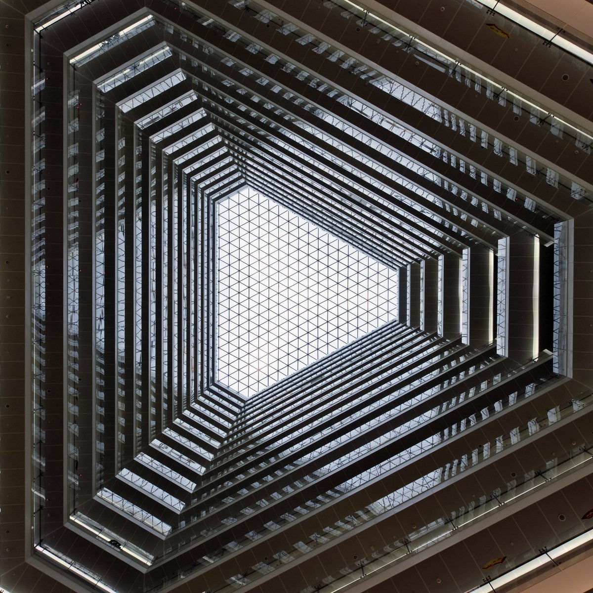 The signature feature of the design is a soaring internal atrium that rises the full height of the building and is enclosed with a dramatic, engineered triangular skylight. The interconnectivity of the atrium creates a commanding presence, allowing access to natural light and views from all locations within. The building enclosure is designed to minimize the overall energy consumption of the building. The triangular building form creates a self-shading massing that minimizes the east and west exposure, allowing for easier control of solar gain along the south facade. A high-performance shingled tower facade is employed to provide passive shading during the warmest summer months.
