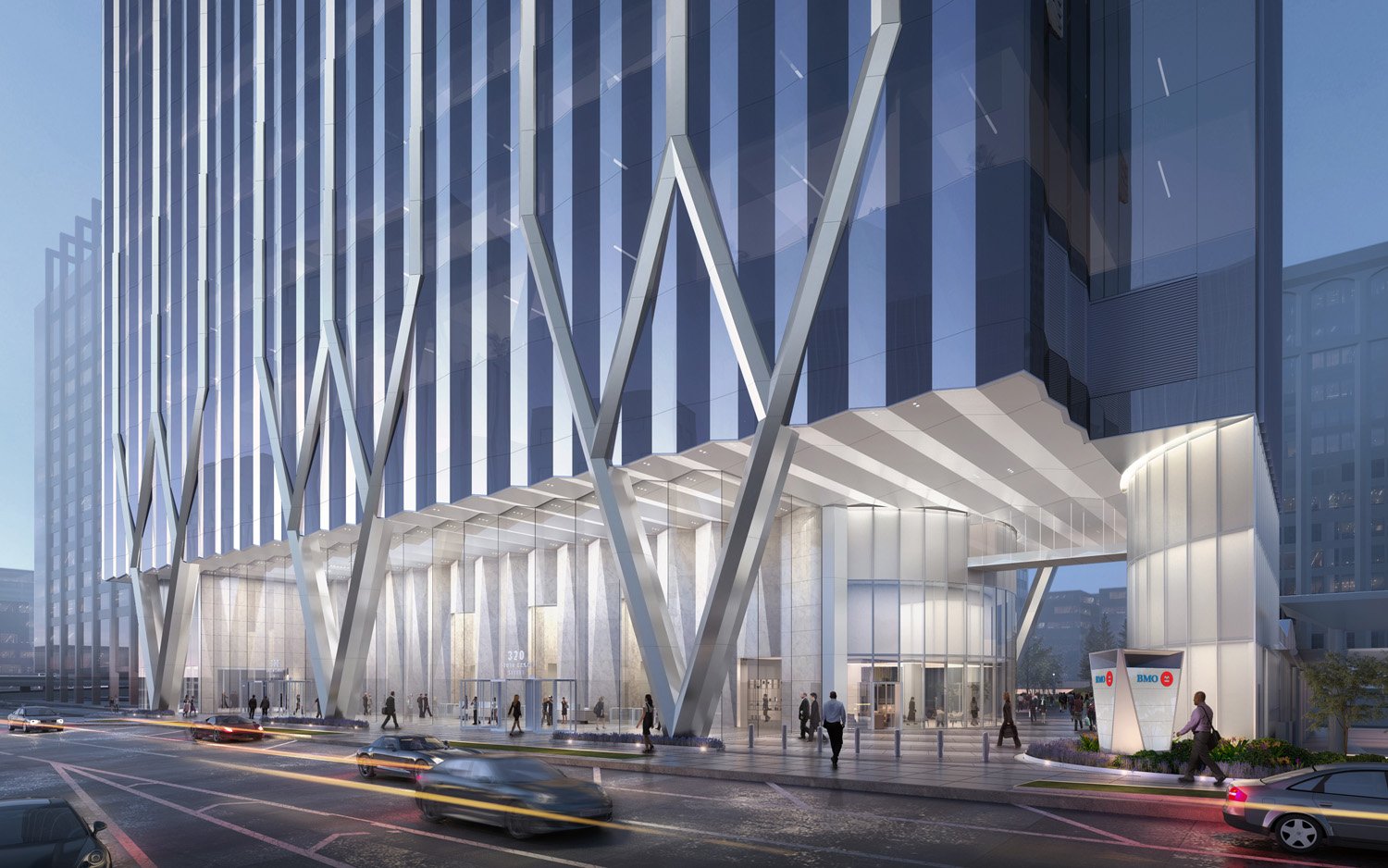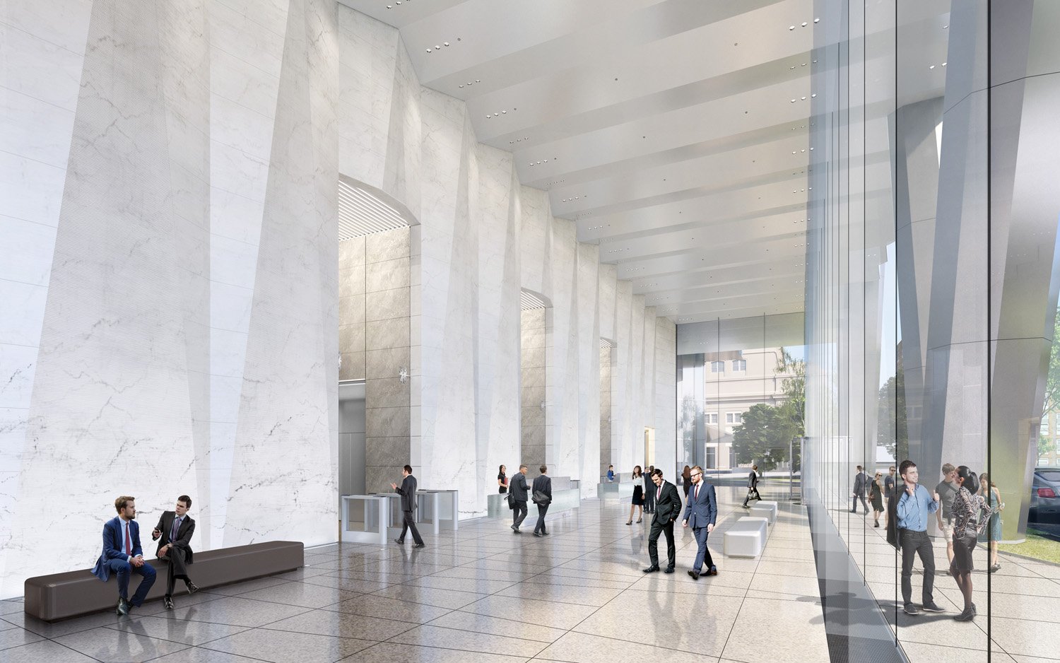 “Similar to our approach on other buildings, we pay particular attention to how the building meets the ground, which is as important to pedestrians as it is to the building tenants,” notes Joachim Schuessler, principal and senior project designer at GP. “The very large structural transfers open up the ground floor of the building in a way that the lobby becomes a part of the streetscape and the streetscape becomes a part of the lobby.”