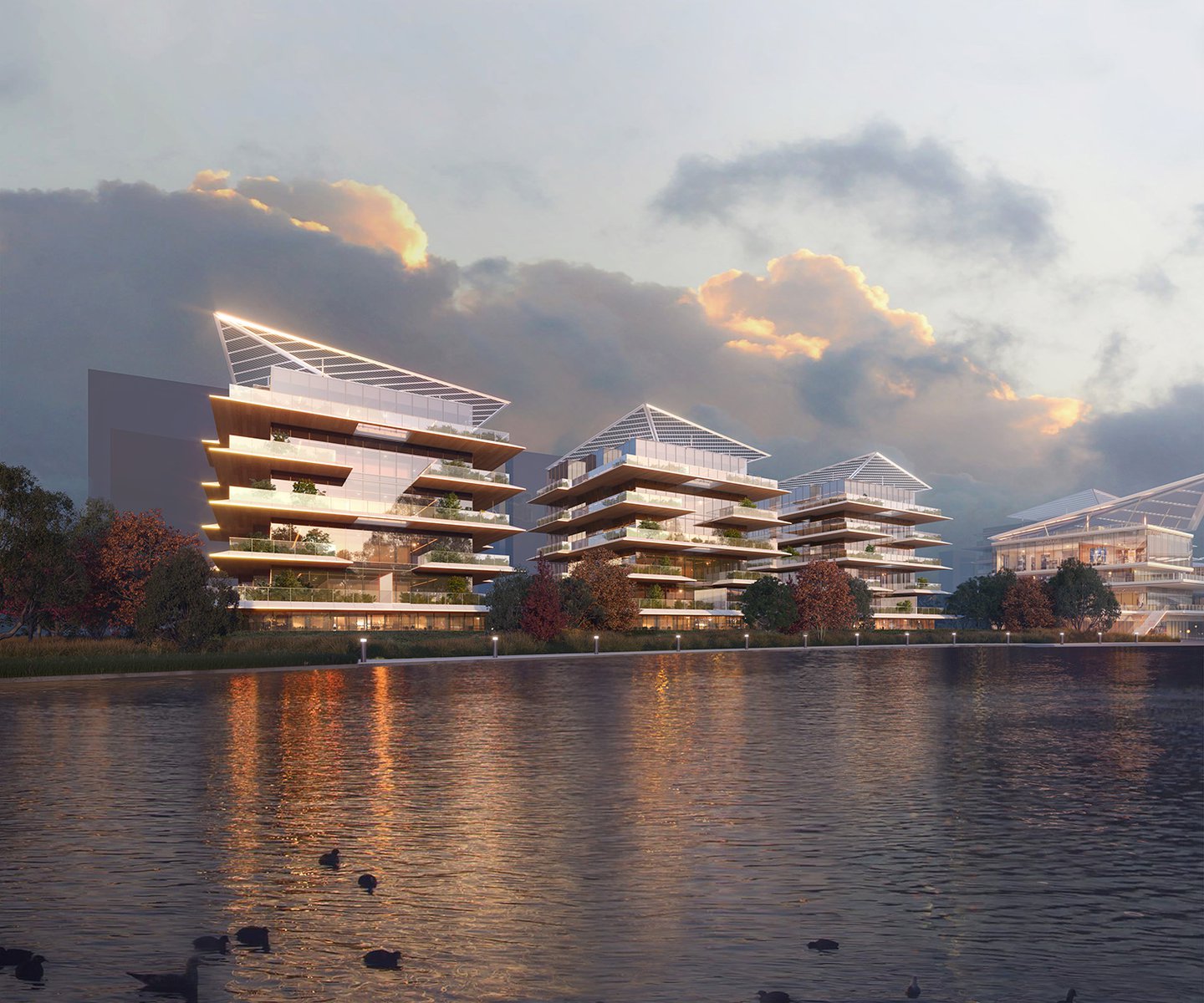 Suzhou, the design of the Qingjian Lake redevelopment integrates residential,