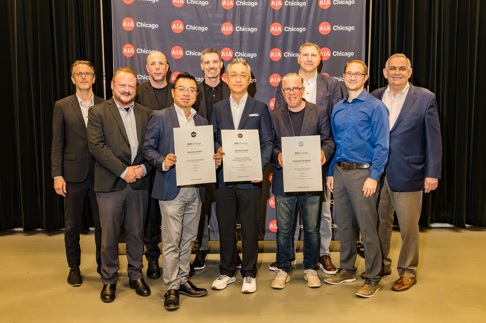 At the annual AIA Chicago Designight event, held at the Harris Theater on September 18, Goettsch Partners received three Design Excellence Awards, including the top honor in each of the two largest building categories, as well as a Certificate of Merit in the Architecture Extra Large category.