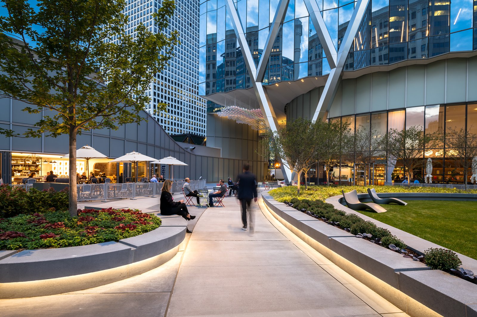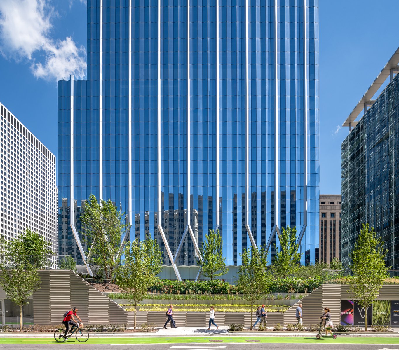 “It is our belief that how a building meets the ground is more important than how it meets the sky,” says James Goettsch, FAIA, chairman and co-design director of GP. “It is where people engage and interact with the building, not just the tenants but the general public.”