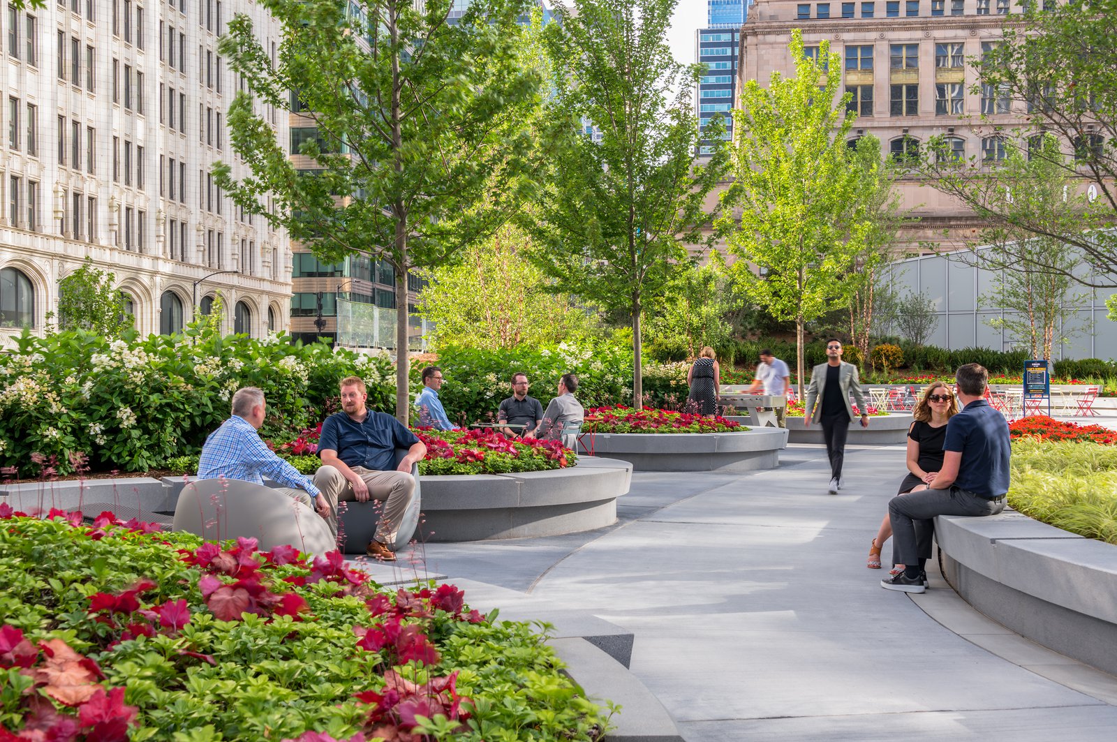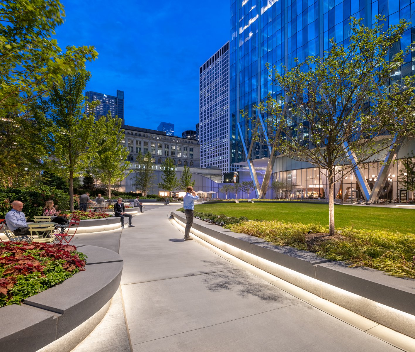 “Within The Green, the traffic and noise of the city are tuned out, and the park becomes an urban oasis, says Joachim Schuessler, principal at GP. “It was important that The Green feels welcoming to building tenants as well as the general public, allowing people to enjoy the park through all times of the day and in all seasons.”