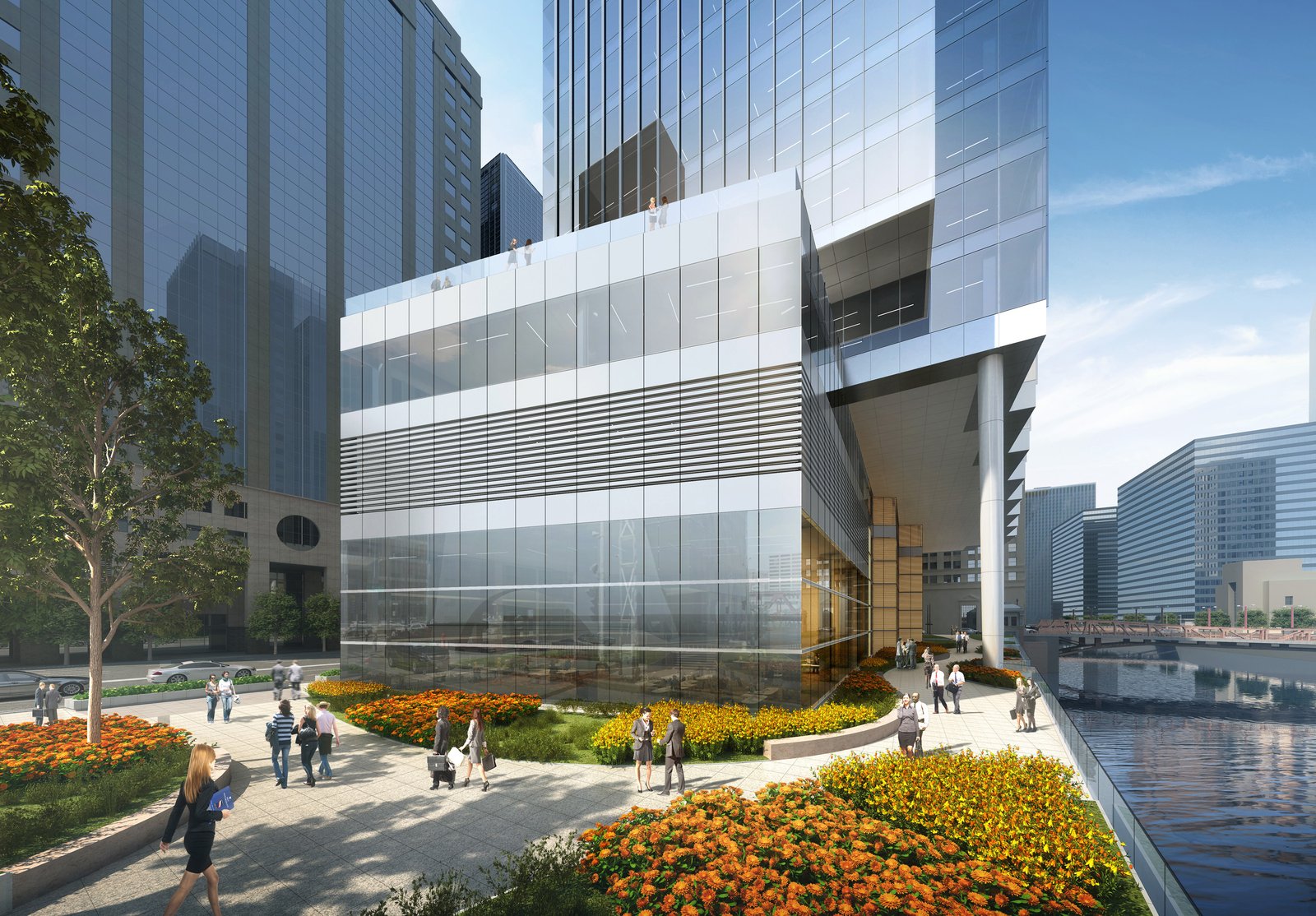 Set between prestigious Wacker Drive and the Chicago River, the 51-story Class-A building is being designed by Chicago-based Goettsch Partners, internationally renowned for their exceptional high-rise design and technical expertise. The 1.35 million-square-foot tower is wrapped in a high-performance, aluminum-and-glass curtain wall and will feature sweeping views up and down the river, as well as of the Chicago skyline and Lake Michigan. The tower will also feature an abundance of first-class modern amenities, including retail and dining options, a conference center, a fitness facility and state-of-the-art building systems.