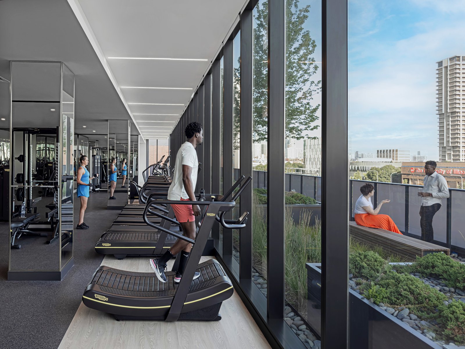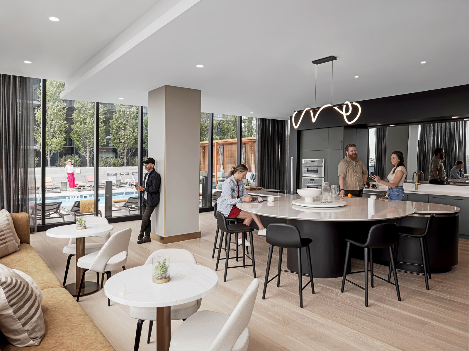 Residents enjoy refined finishes, including floor-to-ceiling windows in every apartment home. Offering several floor plans such as studio, one-, two-, and three-bedroom units, the thoughtfully crafted interiors are warm and welcoming. Penthouses with elevated finishes across all unit types sit atop the building, showcasing superior city views.